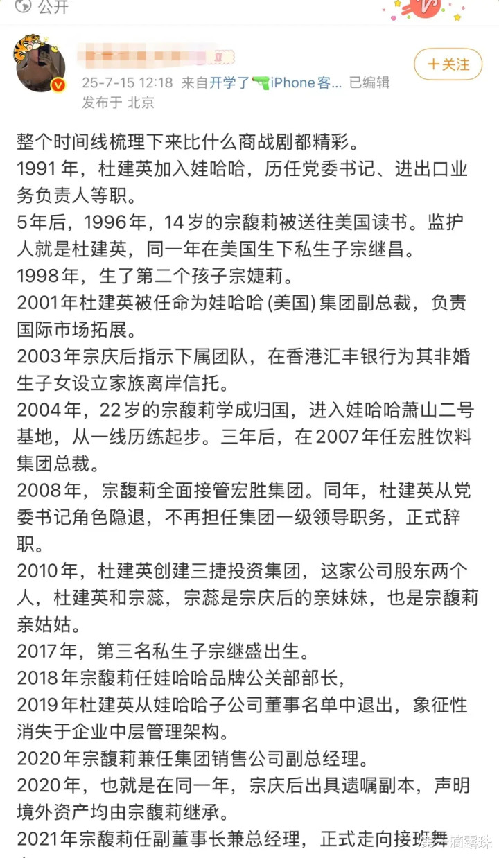 而这场事件的主角宗馥莉,在这场风波中展现出的冷静、果断与魄力,俨然是现实版的爽文大女主,让人看到了一位在商业浪潮、家族纷争中临危不乱、运筹帷幄的女性强者形象。