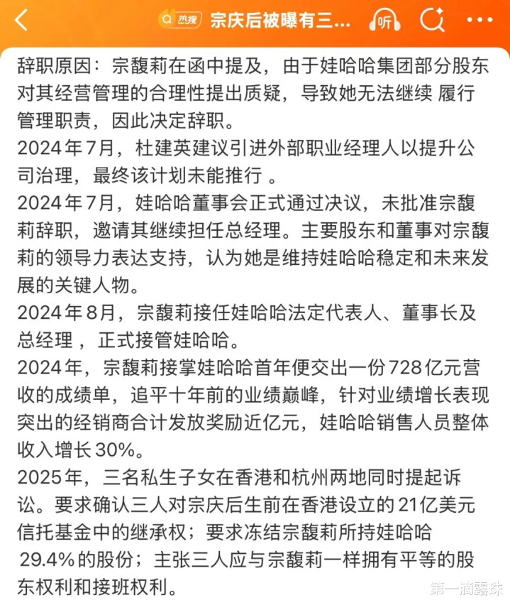 三个非婚生子女的突然出现,与娃哈哈现任董事长宗馥莉的公开对峙,使得原本只存在于电视剧中的豪门恩怨,活生生地在现实中上演了!